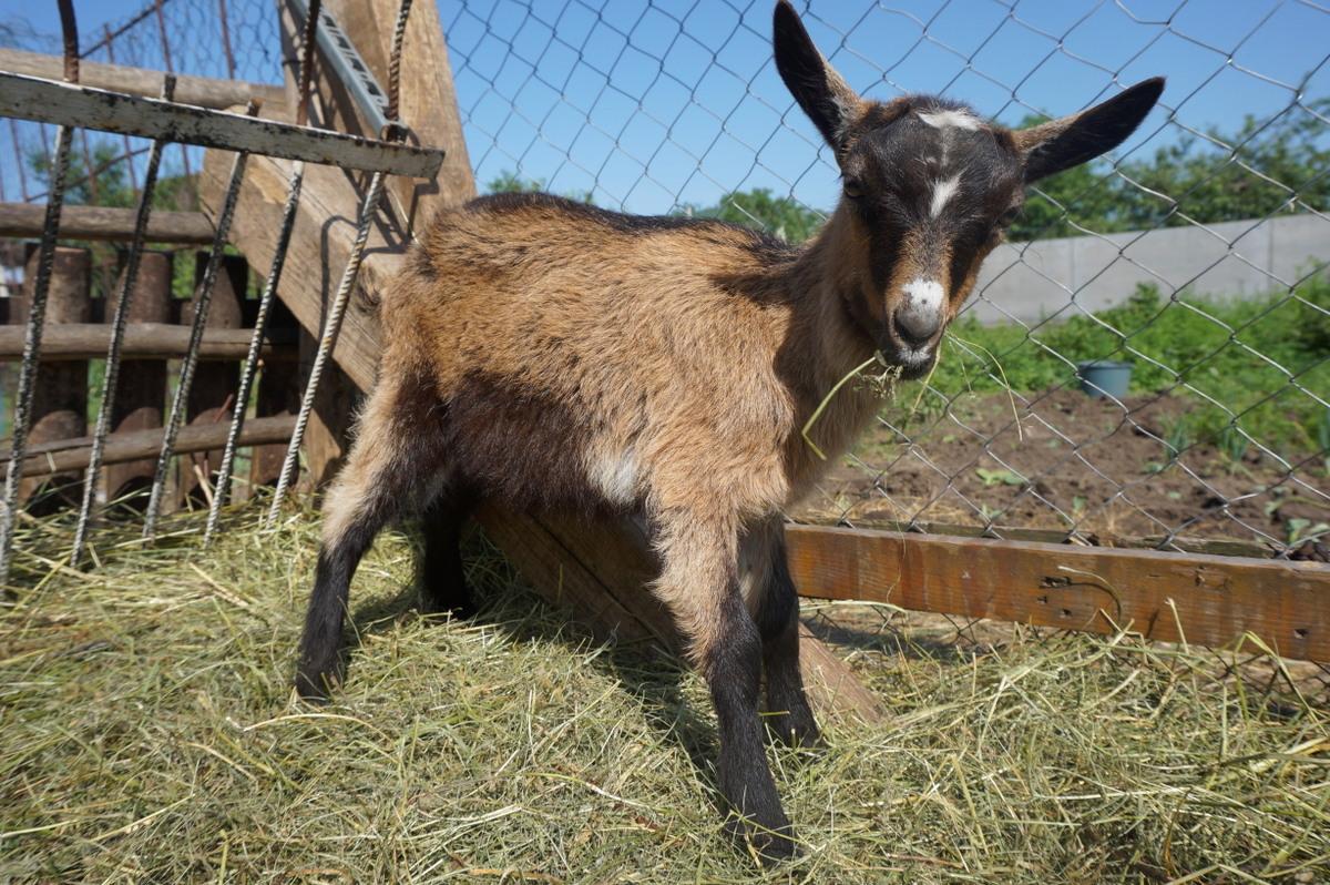 Козочка родилась в двойне 12.03 с весом 3500, генетически рогатая, обезрожена термокаутером