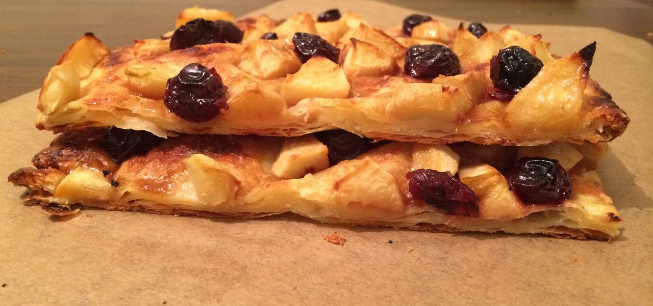 Например, слоеное творожное тесто, которое у нас почти каждую неделю дома, достала из холодильника, быстро раскатала, чтобы масло не растаяло, разложила начинку - и в духовку. Пекла постоянно с маминым вишневым вареньем, которое сварено с тростниковым сахаром. Кроме потрясающего вкуса преимущество, что вишни не текут и тесто пропекается, поднимается и не размокает.