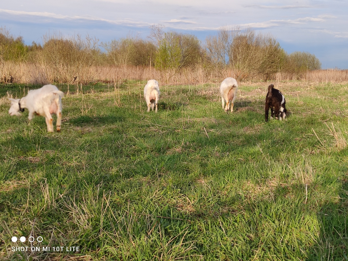 Пик лактации будет в конце мая. Сейчас даёт примерно 2.5 литра молока, при двух разовой дойке.