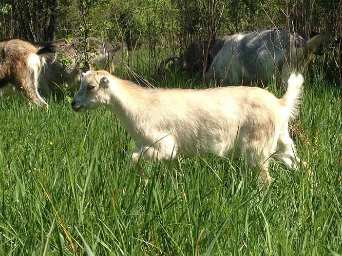 Тося умная и очень сообразительная. Шкодная, конечно, как все дети. Но чётко знает когда можно шкодить, а когда лучше воздержаться. Её мама Тофсла - главная моя помощница на выпасе. Летом, бывает, козы как уйдут куда-то из поля моего зрения. Сделать это не сложно, т.к. трава высока или кусты … А вот Тофсла всегда будет там, где я её сразу нахожу. Увидит, что я иду и ведёт меня туда, куда стадо утопало.