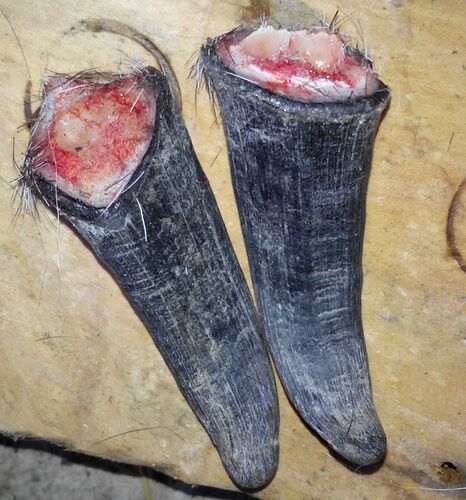 Вот у меня под пальцами хорошо видно маленький кусочек отрастающего рога. Он конечно будет слабым, но может часто ломаться и доставлять уйму неприятностей…