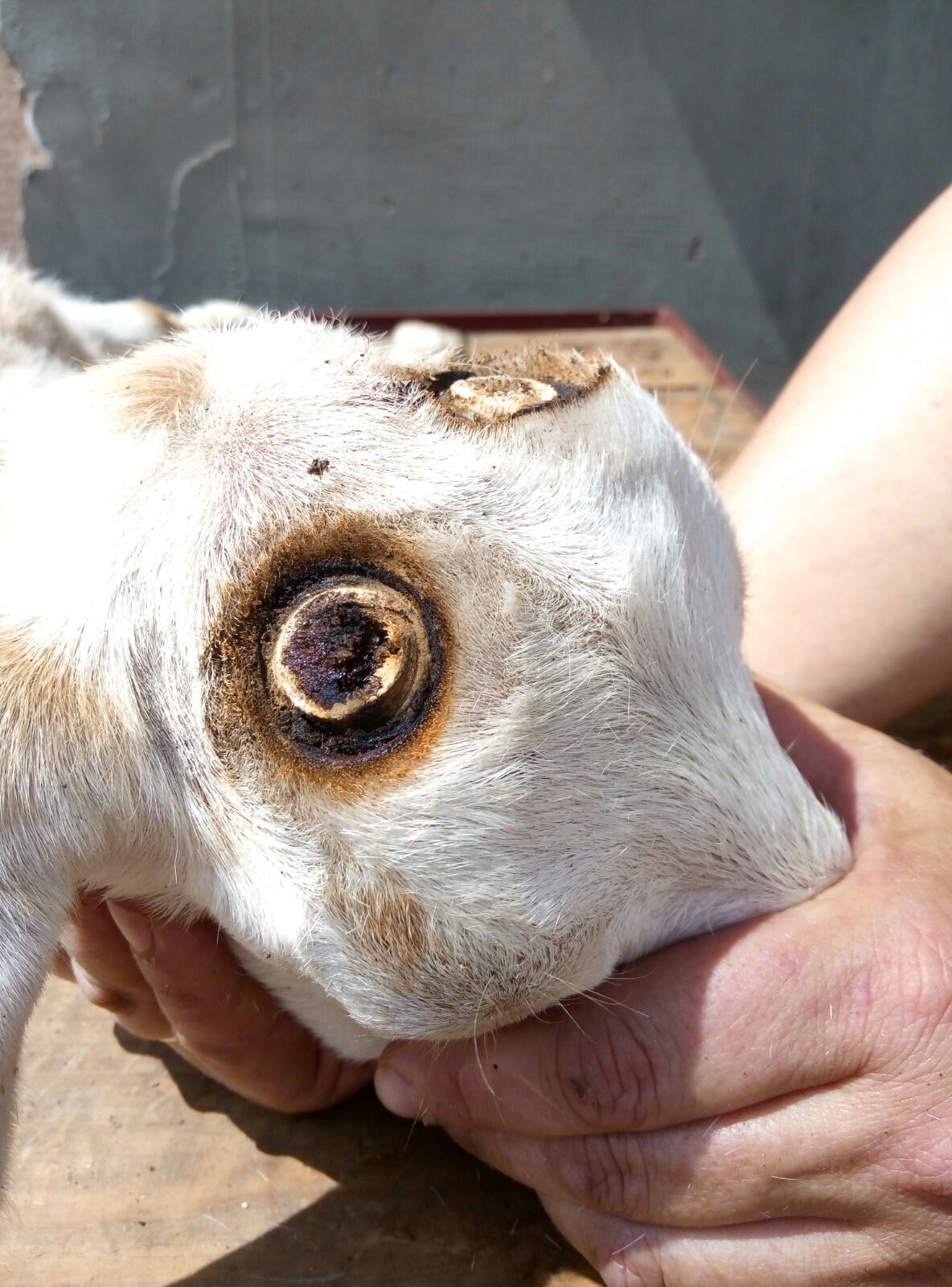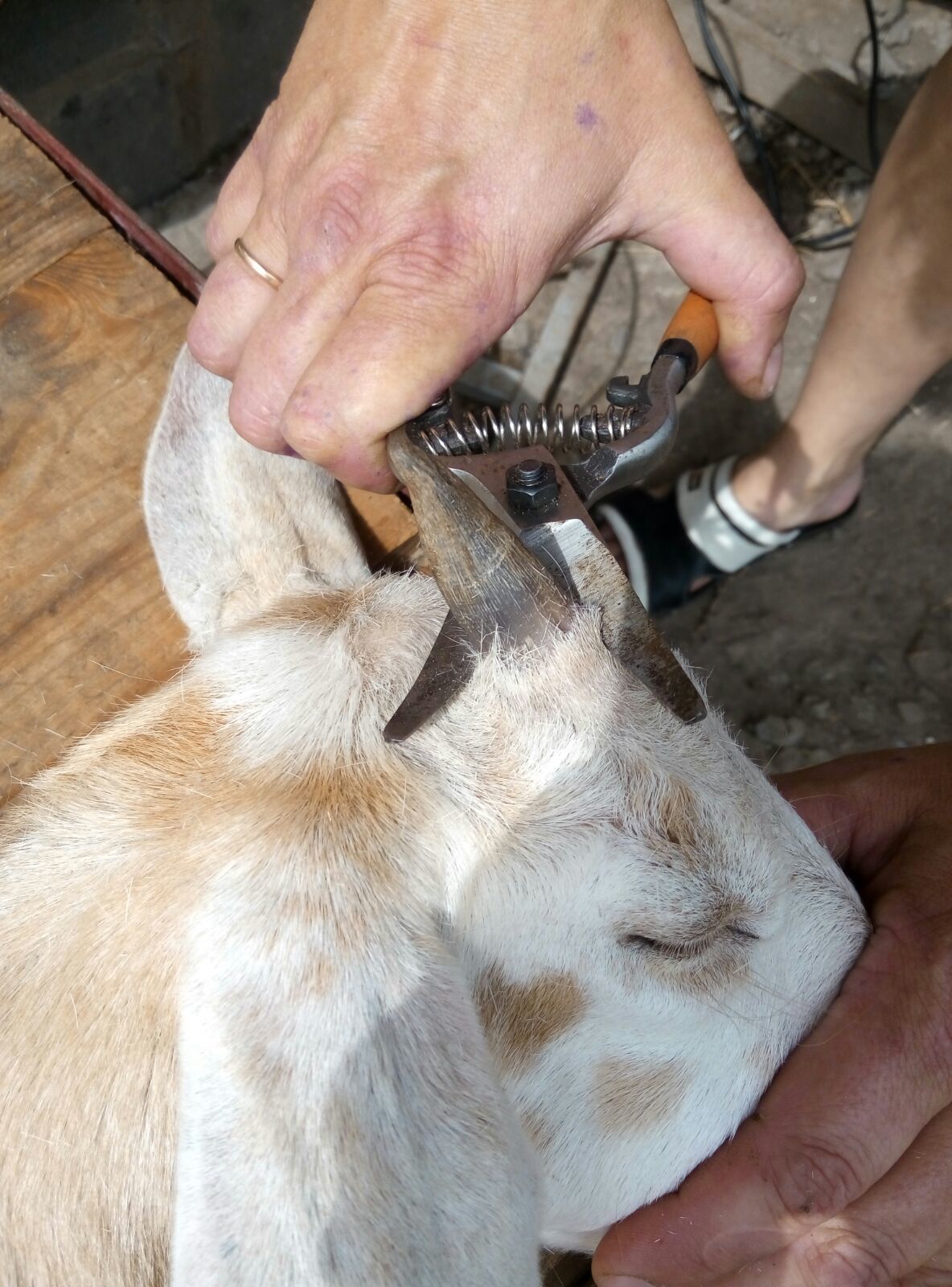 До 2-х месяцев удаляла рога относительно не сложно, все зависит от размера и силы козленка. Ну и от породы. Чем заанестей () и козлее - тем сложнее и нужно раньше браться. Да и старше месяца бывают проколы. Этому козлику удаляли рога в 1 месяц и неделю, и хоть я все хорошо зачищала, но… крышки отпали (корки) и я увидела… рог.