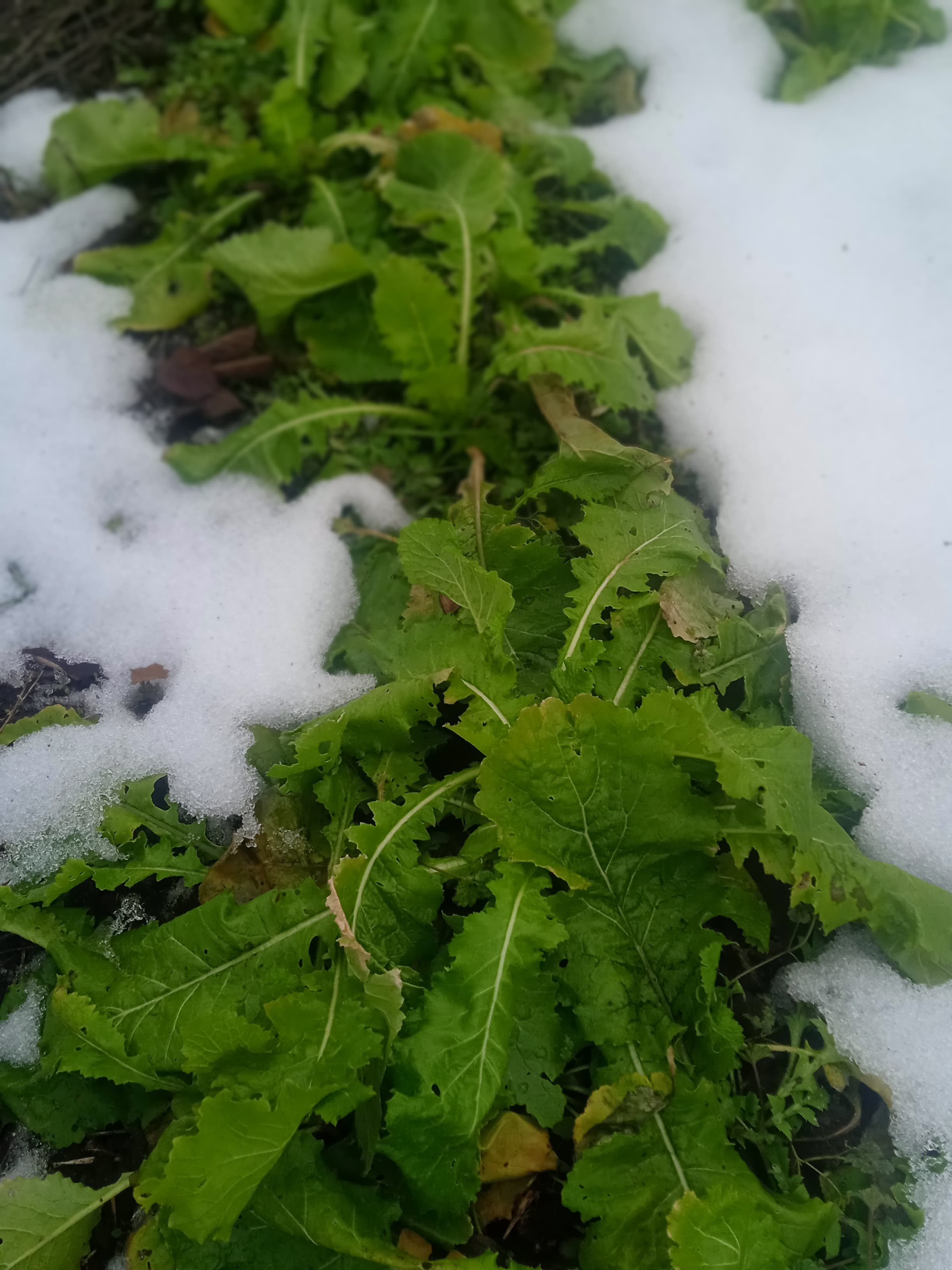 Турнепс в этом году тоже не подвел. Правда, сеять его в июле не было возможности. И в августе тоже. +35-40 и больше с крестоцветными как-то не вязалось. И так вода ушла, а все на поливе, как на ИВЛ. Посеяли поздно, в сентябре. Да, не успел сформировать репку. Но зато рос, именно активно рос и развивался до нового года. Ведь на холод ему плевать! И морозов он не боится. А мы почти до Рождества – всем почитателям свежей зелени с поля носили витаминов вволю. Так что зачет турнепсу и в этом году.