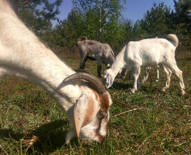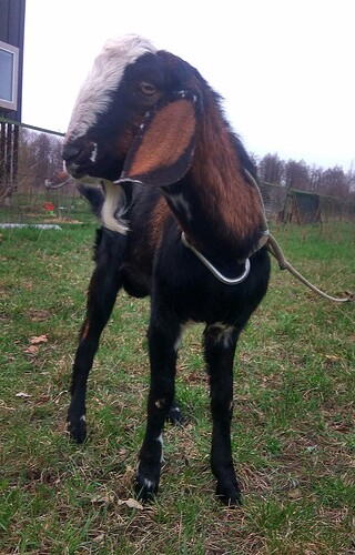 До речі покищо дуже задоволена його характером, дружелюбний і слухняний. Надіюсь таким і лишиться. І за літо гарно ваги набере, осінь його виснажила, три наречені і стільки кізок наробив, весь схудався бідний.
